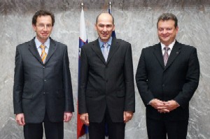 Prime Minister Janez Janša and ministers Iztok Jarc /right/ and Dr Žiga Turk /left/ (Photo: Primož Lavre/Salomon 2000)