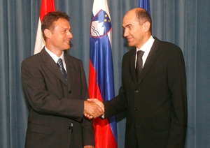 The Prime Minister of the Republic of Slovenia, Janez Janša, received the Minister of Foreign Affairs and European Integration of the Republic of Croatia, Gordan Jandroković, in Ljubljana today. The latter congratulated Mr Janša on Slovenia's successful Presidency of the Council of the European Union.