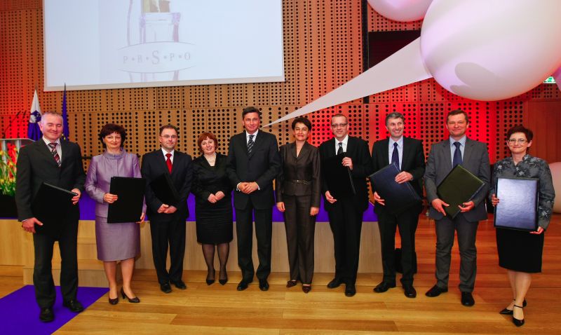 Premier Borut Pahor in ministrica Irma Pavlinič-Krebs z dobitniki priznanj Republike Slovenije za poslovno odličnost za leto 2009 (Foto: Stanko Gruden/STA)